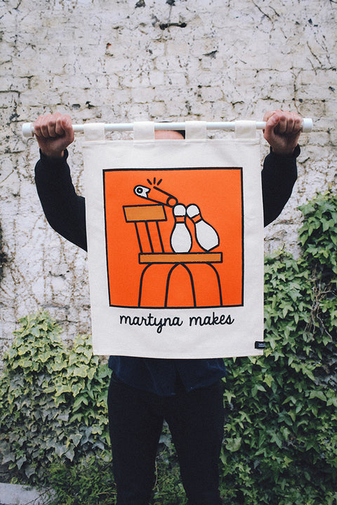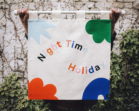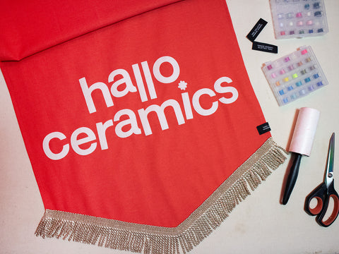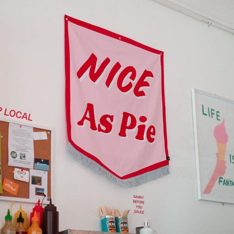 All of my banners are cut and stitched in my (very pink) textile studio in Manchester. Each letter is individually stitched down to guarantee signage longevity.