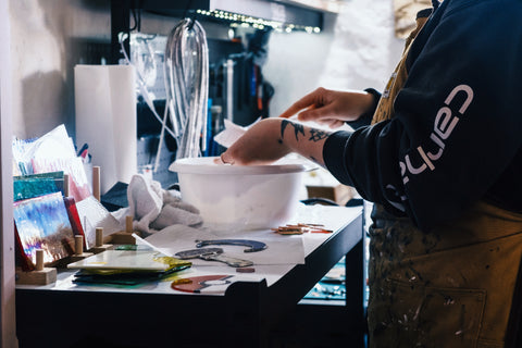 In 2020, Tara taught herself the art of stained glass and incorporated it into her practice alongside her textile works.